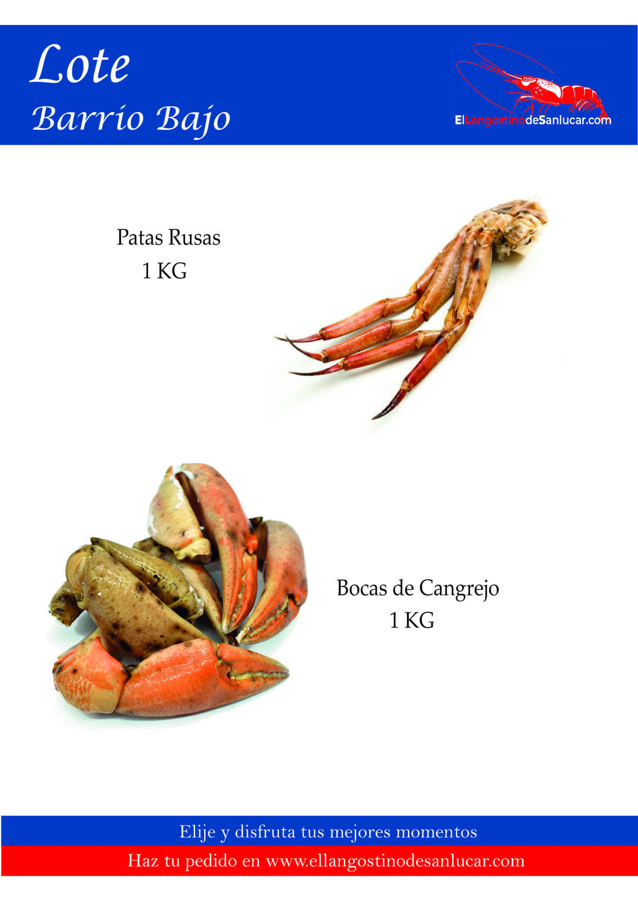 Recibe cómodamente tus mariscadas de Sanlúcar. Está compuesta por Gamba Blanca, Langostino de Sanlúcar, Cigalas de Coral, Patas y Bocas de Cangrejo Rojo del Pacífico extraordinariamente sabrosas. Siente la brisa de Bajo de Guía en tu hogar. Los mejores mariscos a domicilio.